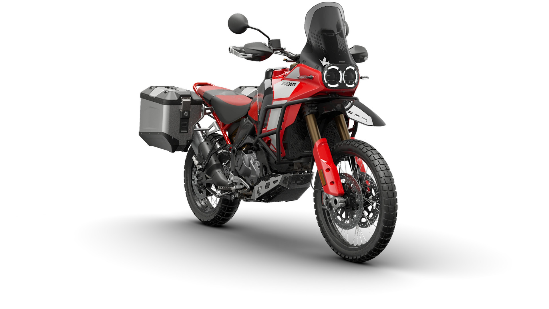 One of the DesertX Discovery’s biggest highlights is its exclusive new color scheme, featuring a striking mix of Ducati Red, Thrilling Black, and White, setting it apart from the standard models.